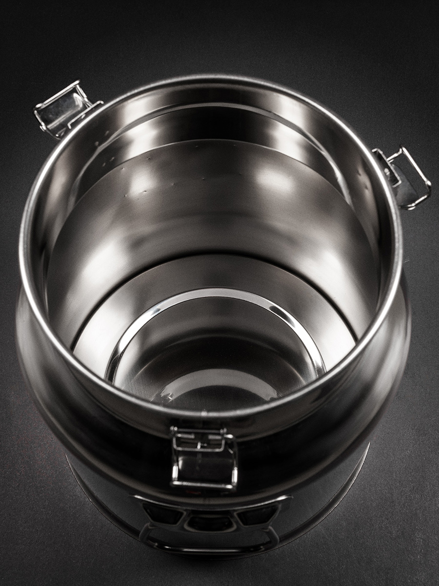 - Бидон подходит для использования в качестве бродильной емкости. Нержавеющая сталь, из которой он выполнен, нейтральна к кислотам и средам, поэтому вы можете не беспокоиться за свое сырье. Для брожения вам потребуется только установить гидрозатвор.