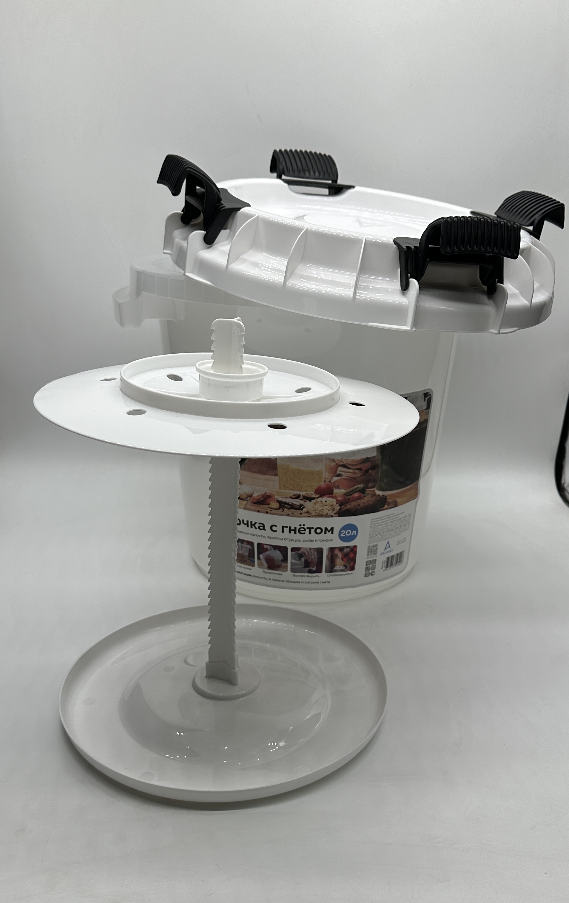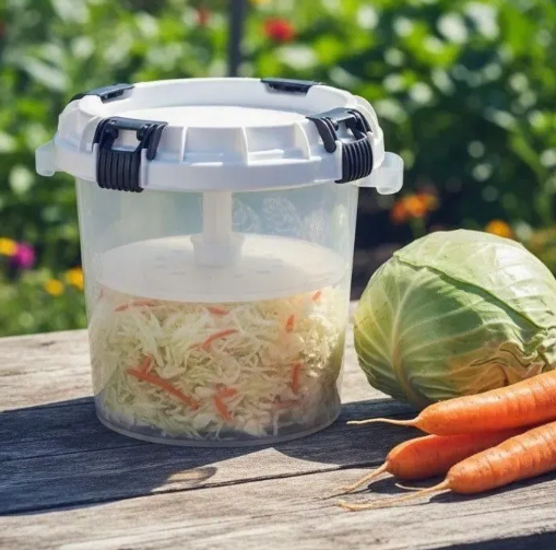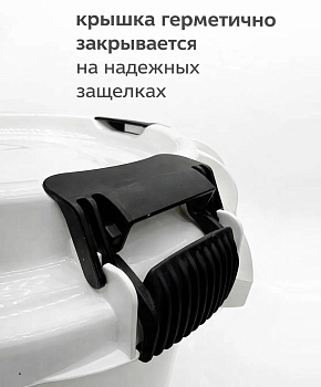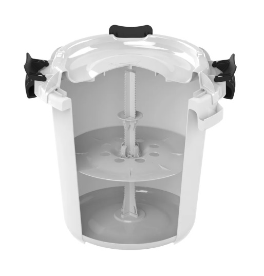 Система из 4 замков плотно закрывает крышку на протяжении периода консервации, исключая попадание посторонних бактерий, запахов, и порчу маринованных продуктов. Бочка для квашения легко моется бытовыми средствами, не впитывает запахи - вы сможете использовать ее для разных овощей в разное время использования, а также просто оставлять в емкости ягоды или фрукты на хранение в летний период.