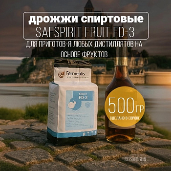 Дрожжи Safspirit Fruit (FD-3) 500 г используются для приготовления кальвадоса, бренди и любых дистиллятов на основе фруктов. Подходят для производства напитков из агавы. Данный штамм дрожжей обладает нейтральным ароматическим профилем, но в некоторых случаях производит большое количество сложных эфиров, которые отвечают за изысканные фруктовые тона.