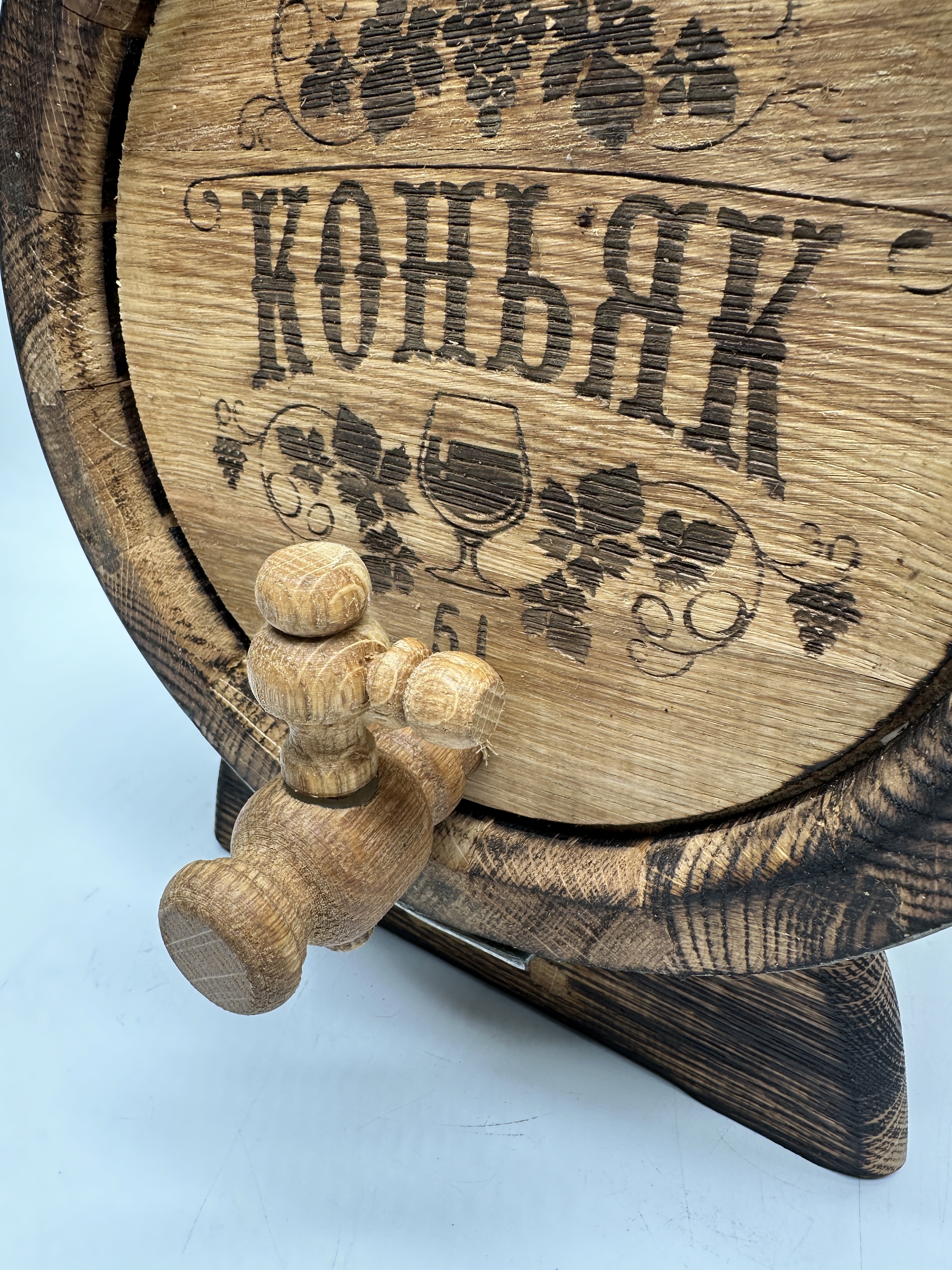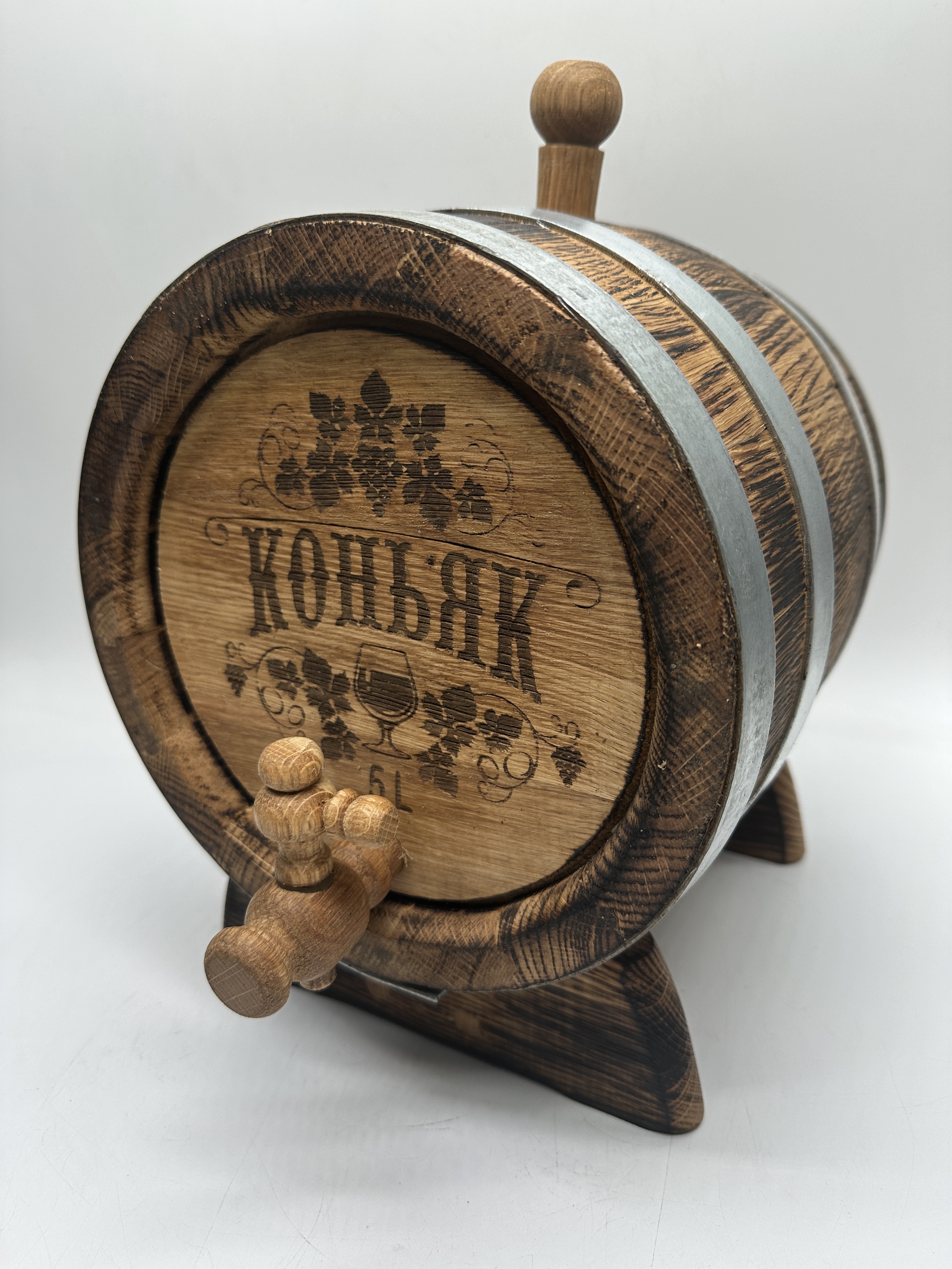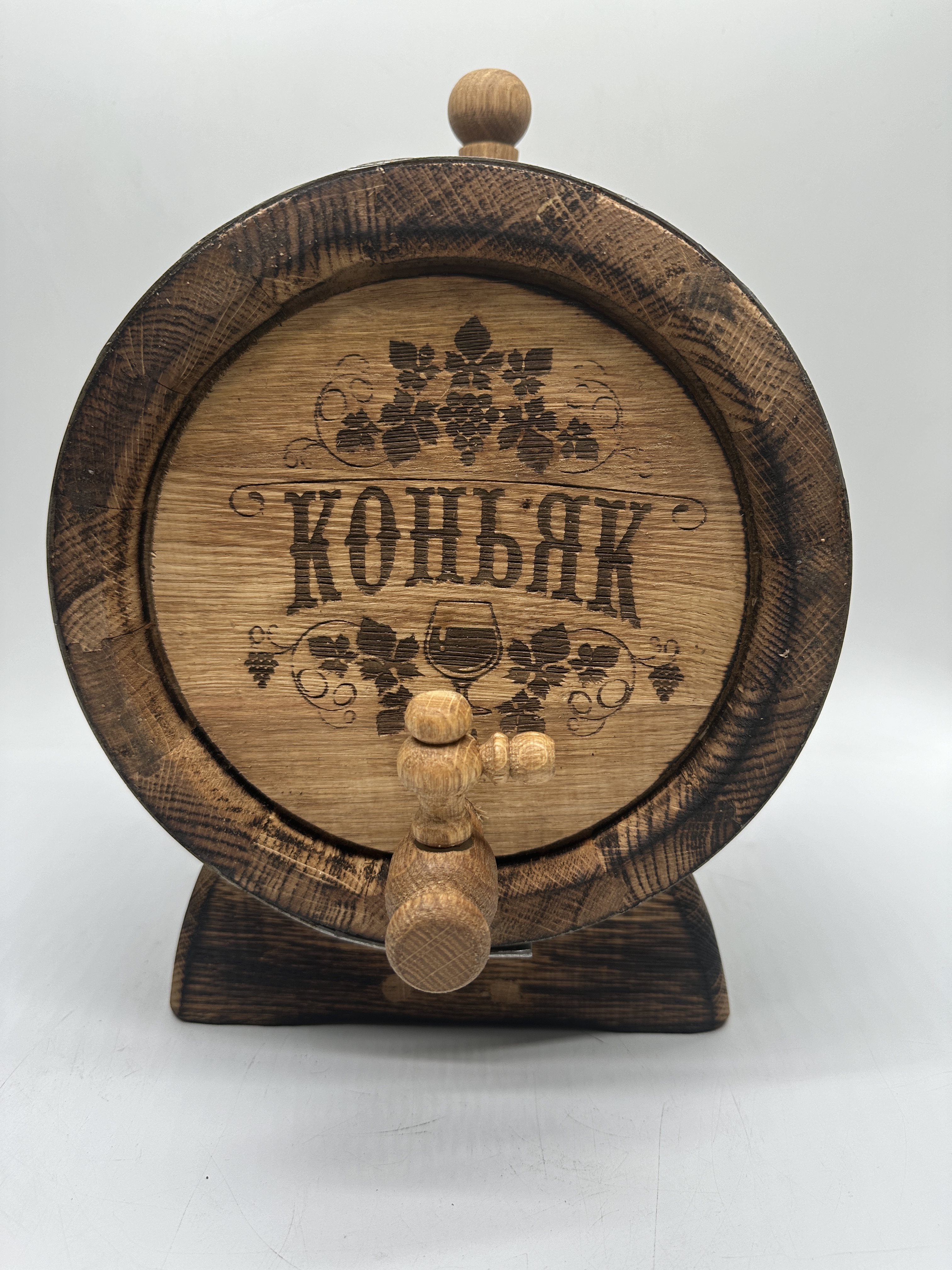 Дубовая бочка подарочная «КОНЬЯК» внешний обжиг 5 л (кавказский дуб) с краном