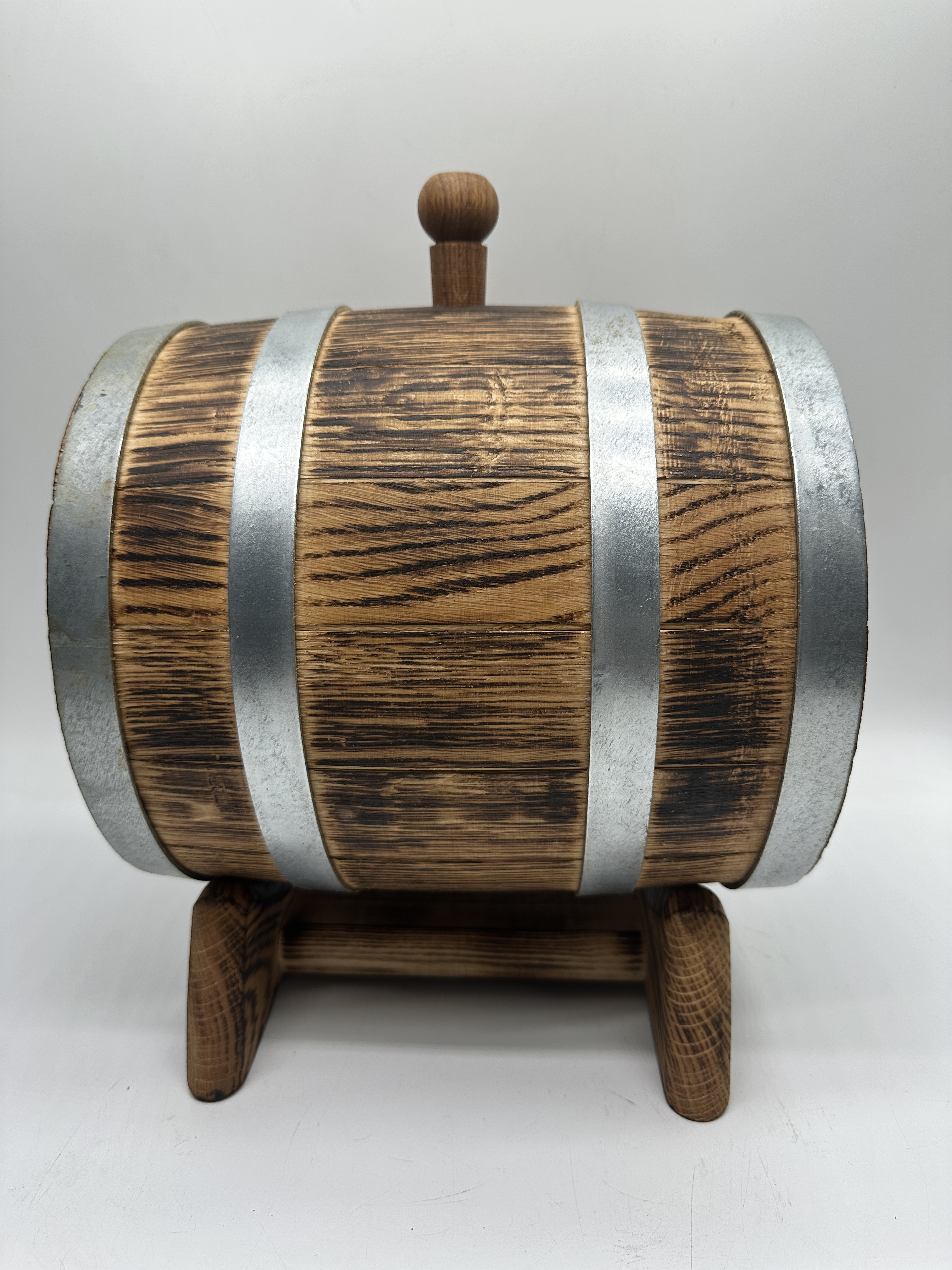 Дубовая бочка подарочная «С ДНЕМ РОЖДЕНИЯ» внешний обжиг 5 л (кавказский дуб):