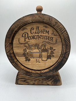 Дубовая бочка подарочная «С ДНЕМ РОЖДЕНИЯ» внешний обжиг 5 л (кавказский дуб)