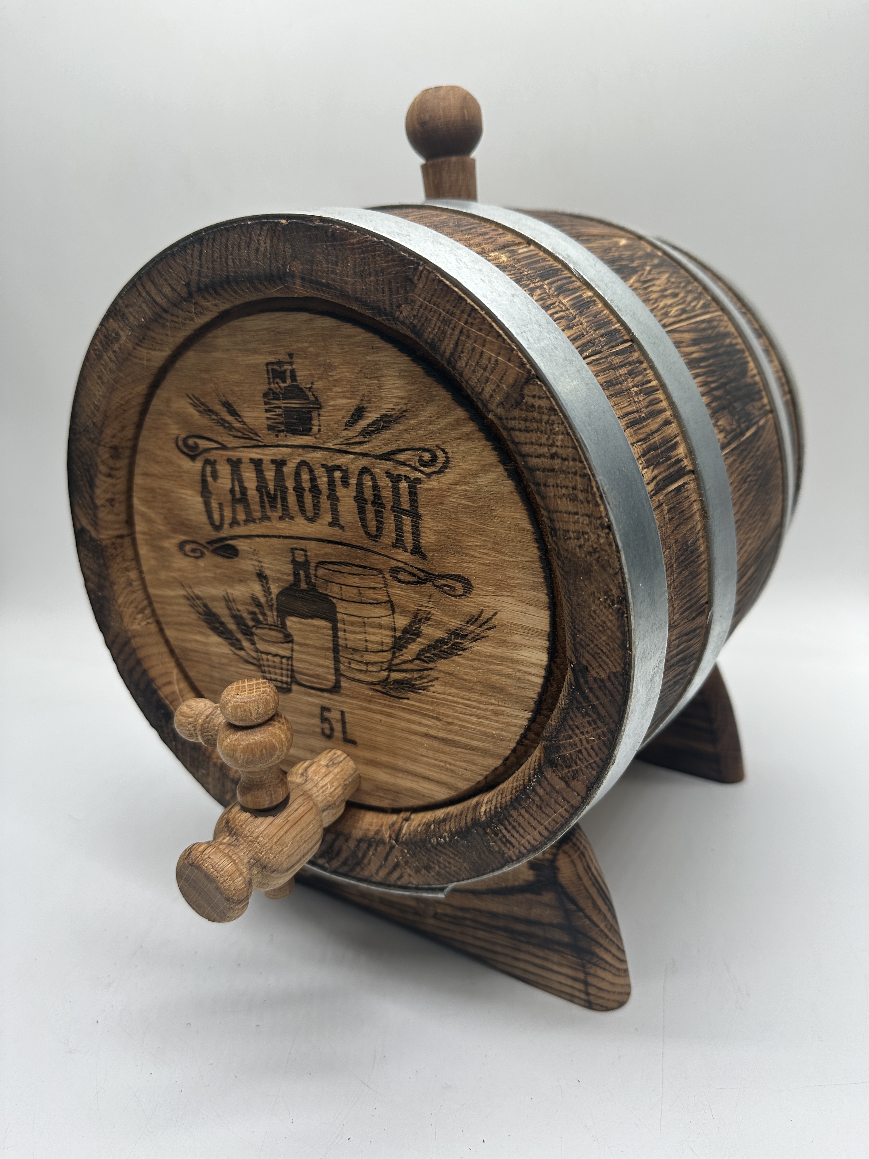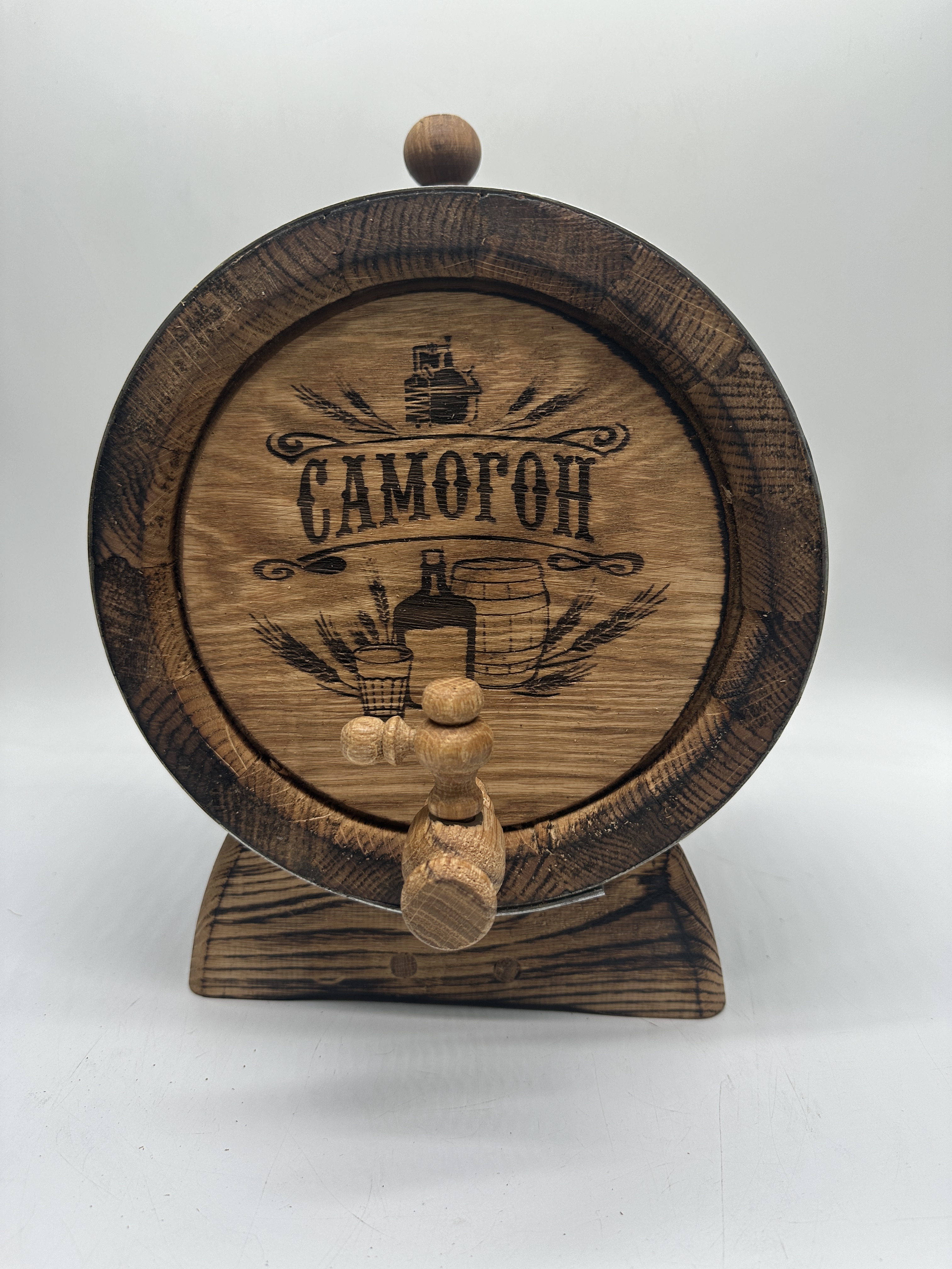 Дубовая бочка подарочная «САМОГОН» внешний обжиг 5 л (кавказский дуб) с краном
