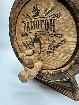Дубовая бочка подарочная «САМОГОН» внешний обжиг 5 л (кавказский дуб) с краном - отличный вариант подарка на День Рождения или любой праздник. Бочка имеет привлекательный внешний вид и станет настоящим украшением праздника. Подходит для хранения и выдержки вина, самогона, виски, рома и другого крепкого алкоголя. Выполнена из кавказского скального дуба породы Quercus petraea, возраст которого не менее 80 лет. Бочка изготовлена на современном европейском оборудовании, что гарантирует идеальную геометрию бочки и качественную ее обработку.