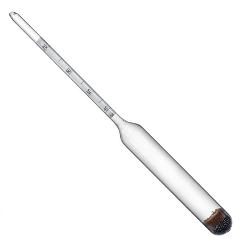 - Спиртомер прост в использовании. Для определения крепости его необходимо погрузить в жидкость таким образом, чтобы он свободно плавал, не касаясь стенок ёмкости.
